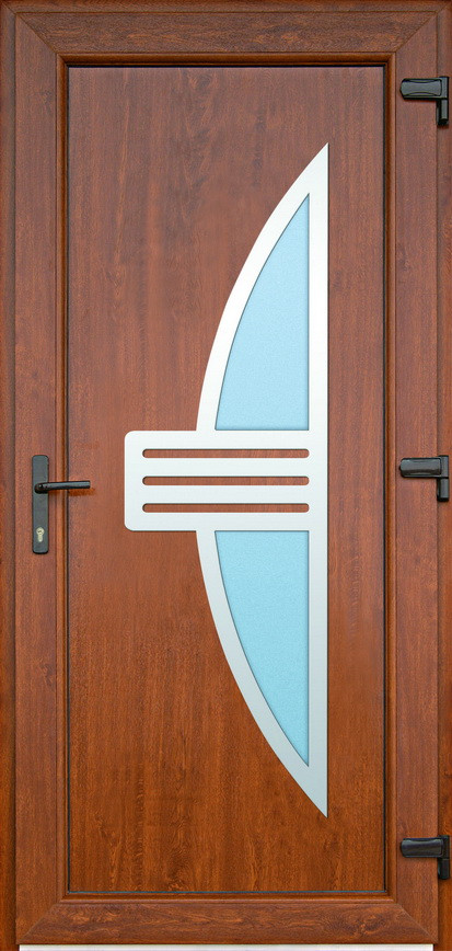 A CANDO EUROPA INOX Aranytölgy műanyag bejárati ajtó 6 légkamrás, 70 mm beépítési mélységű, nagy keménységű, hőhídmentes,